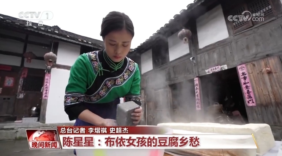 在貴州省貴陽(yáng)市烏當(dāng)區(qū)偏坡布依族鄉(xiāng),陳星星正在錄制最新一期短視頻,通過(guò)布依族山歌推廣市級(jí)非遺豆制品制作技藝。在當(dāng)?shù)?,豆腐的做法多種多樣:搗碎、糅團(tuán)、油炸、加入折耳根,豆腐圓子外焦里嫩。切薄塊、擺盤、佐以豬耳,鹵豆腐拼盤口味豐富。此外還有農(nóng)家三寶、絲絲相扣、木耳豆腐等菜式。2023年,碩士畢業(yè)的陳星星,沒(méi)有像鄉(xiāng)親們預(yù)期的那樣,考個(gè)城里體面的工作,而是戴上圍裙、挎上竹籃,回到群山環(huán)抱的家鄉(xiāng),做起了灰豆腐事業(yè)。