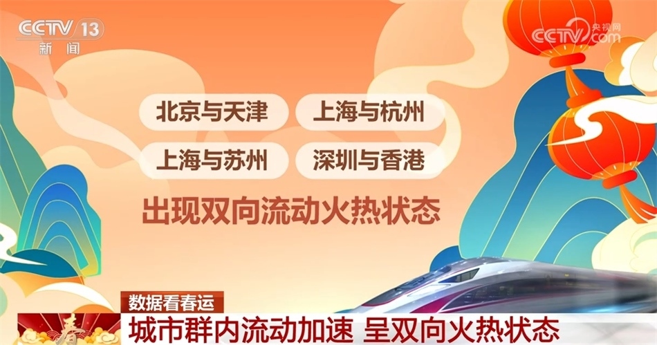 數(shù)據(jù)顯示,城市群內(nèi)的流動(dòng)也在明顯加速,尤其是北京到天津、上海到杭州、上海到蘇州、深圳到香港這些熱門路線,出現(xiàn)了雙向流動(dòng)火熱的狀態(tài)。