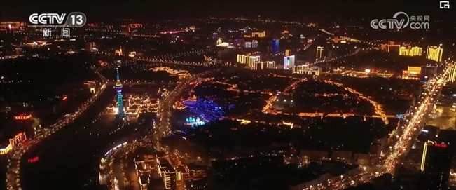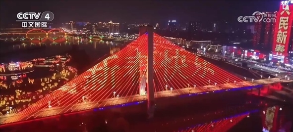夜幕降臨,新春光影秀點亮城市夜景,多個城市地標建筑流光溢彩,市民游客共同感受龍年的歡騰圖景。