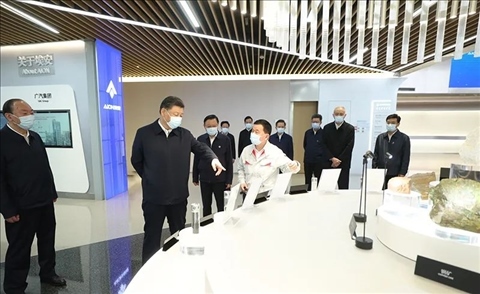2023年4月,在廣東考察的習近平總書記來到廣汽埃安新能源汽車股份有限公司。