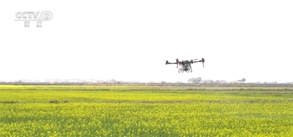 在江西省南昌市新建區(qū)的這個(gè)稻油輪作示范基地,金黃的油菜花競(jìng)相開放。花海上空,無(wú)人機(jī)在專業(yè)人員的操控下,均勻地將肥料和農(nóng)藥噴撒至油菜田間,為油菜提供生長(zhǎng)的能量和養(yǎng)分,抑制病菌繁殖,提高油菜結(jié)莢率及產(chǎn)量。