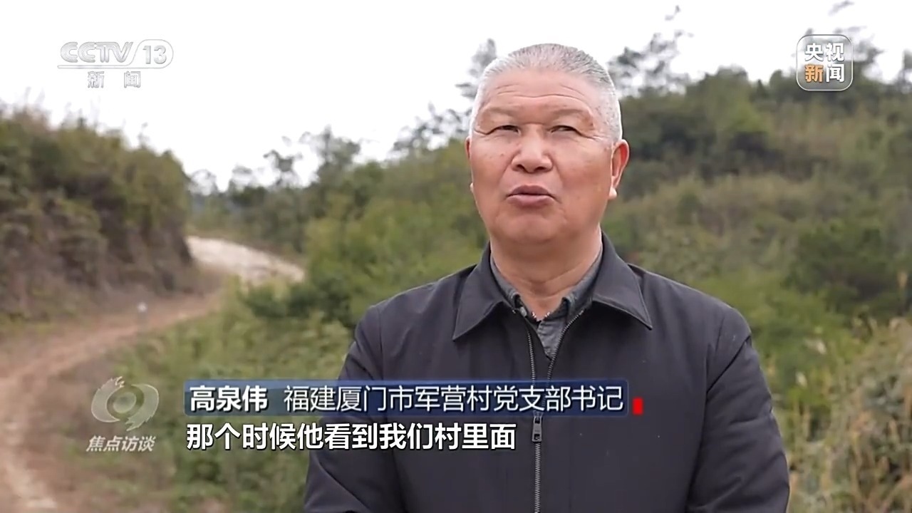 福建廈門市軍營村黨支部書記 高泉偉:“第一次講‘山上戴帽山下開發(fā)’,那時候他看到我們村里樹木都砍光了,連雜草也割回去當(dāng)作肥料,其實是叫我們管好山管好水;第二次叫我們既要種茶種果,也別忘了森林綠化?!?/p>