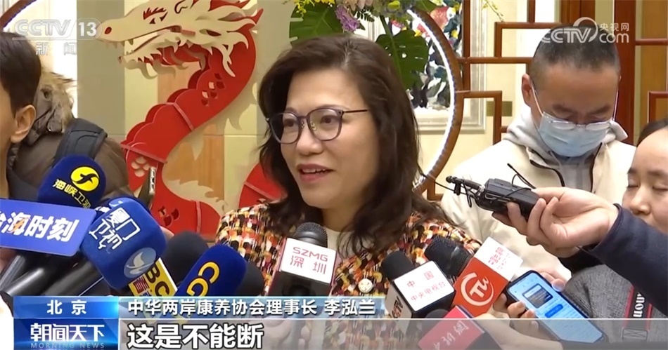 此外,中華兩岸康養(yǎng)協(xié)會理事長李泓蘭稱:“我覺得兩岸的融合發(fā)展已經(jīng)你中有我、我中有你,在各個產(chǎn)業(yè)鏈都是如此,就如同我們的血脈親緣關(guān)系一樣,不是說斷就能斷的,不能斷,就像兩岸的交流也不能斷,要靠我們這一代代代相傳、生生不息地傳接下去?!?/p>