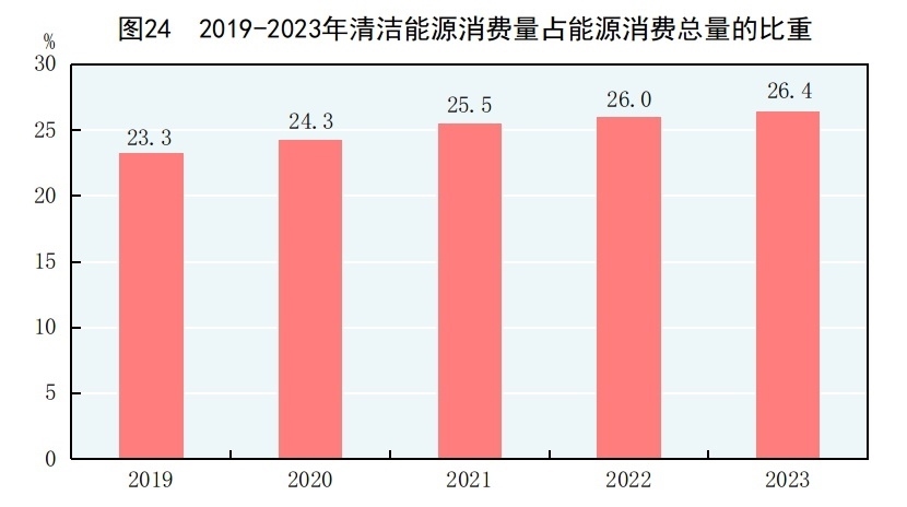 初步核算,全年能源消費(fèi)總量57.2億噸標(biāo)準(zhǔn)煤,比上年增長5.7%。煤炭消費(fèi)量增長5.6%,原油消費(fèi)量增長9.1%,天然氣消費(fèi)量增長7.2%,電力消費(fèi)量增長6.7%。煤炭消費(fèi)量占能源消費(fèi)總量比重為55.3%,比上年下降0.7個(gè)百分點(diǎn);天然氣、水電、核電、風(fēng)電、太陽能發(fā)電等清潔能源消費(fèi)量占能源消費(fèi)總量比重為26.4%,上升0.4個(gè)百分點(diǎn)。重點(diǎn)耗能工業(yè)企業(yè)單位電石綜合能耗下降0.8%,單位合成氨綜合能耗上升0.9%,噸鋼綜合能耗上升1.6%,單位電解鋁綜合能耗下降0.1%,每千瓦時(shí)火力發(fā)電標(biāo)準(zhǔn)煤耗下降0.2%。初步測算,扣除原料用能和非化石能源消費(fèi)量后,全國萬元國內(nèi)生產(chǎn)總值能耗[83]比上年下降0.5%。全國碳排放權(quán)交易市場碳排放配額[84]成交量2.12億噸,成交額144.4億元。