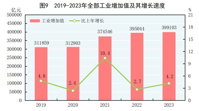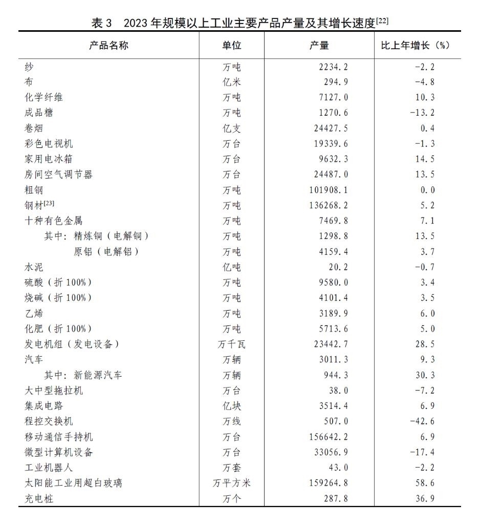 [11]由于統(tǒng)計(jì)調(diào)查制度規(guī)定的調(diào)查范圍變動、統(tǒng)計(jì)執(zhí)法、剔除重復(fù)數(shù)據(jù)等因素,2023年規(guī)模以上工業(yè)相關(guān)指標(biāo)增速及變化按可比口徑計(jì)算。