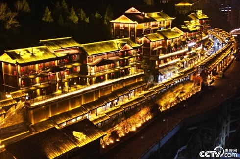 重慶酉陽(yáng),酉州古城夜景璀璨美如畫。