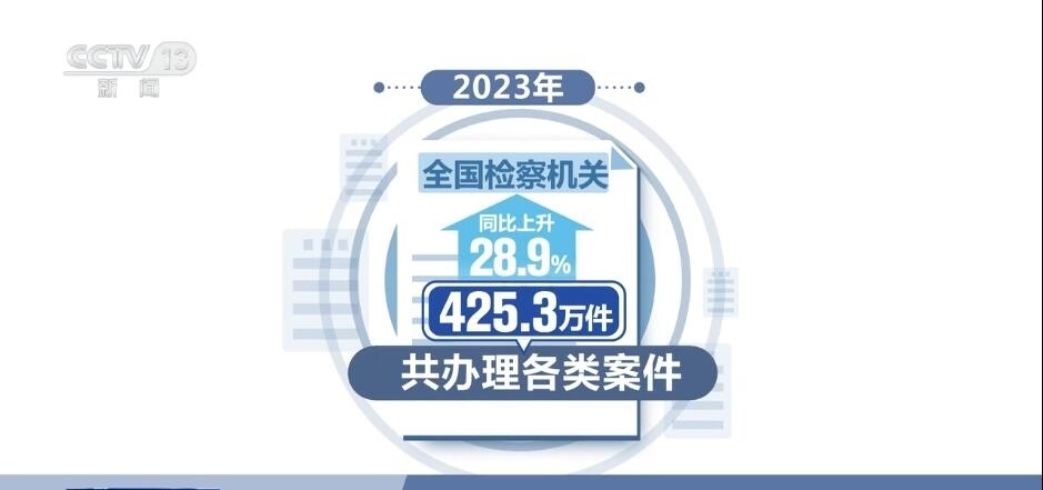 2023年,全國(guó)檢察機(jī)關(guān)共辦理各類案件425.3萬(wàn)件,同比上升28.9%。