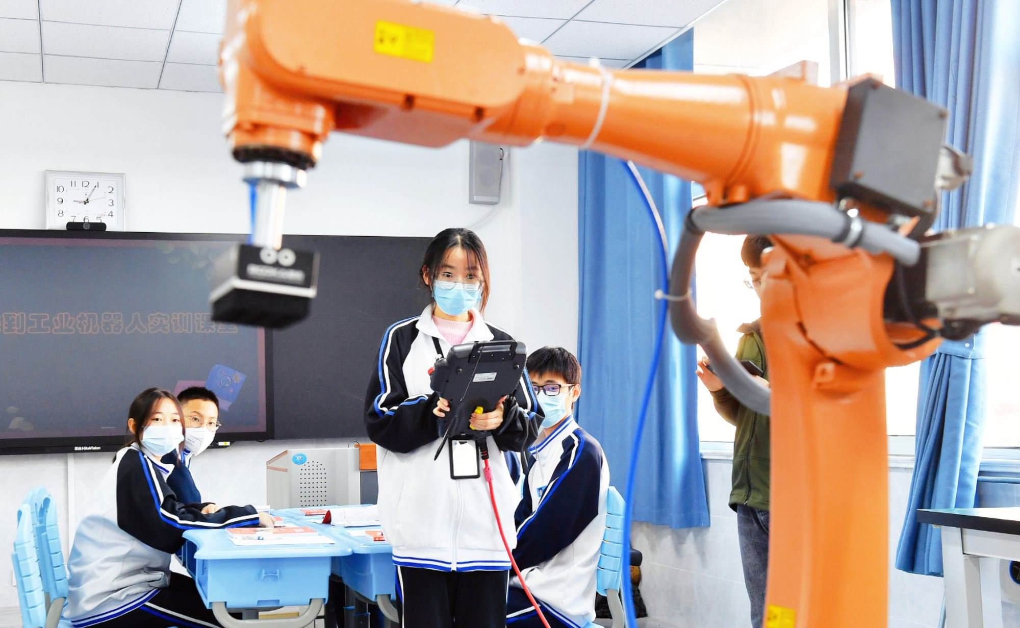職校學(xué)生操控工業(yè)機器人