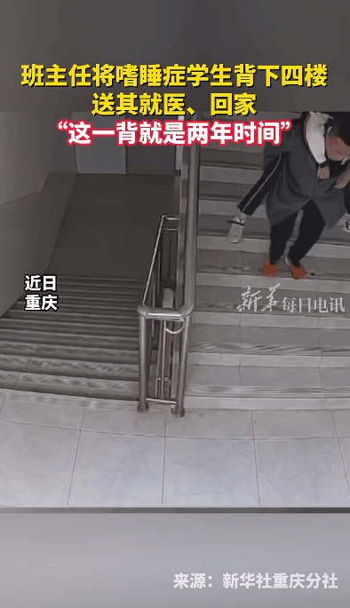 重慶墊江中學(xué)初二班里有位留守同學(xué)患有“嗜睡癥”,常常一睡不醒。老師們?cè)囘^捏鼻子、用冷水巾擦臉、輕拍臉頰,多種方式都不奏效,最嚴(yán)重時(shí)一周會(huì)發(fā)作兩三次。每次他一睡不醒時(shí),班主任徐龍軍都會(huì)把他從四樓寢室背下來,送他回家或就醫(yī),這一背就是兩年。