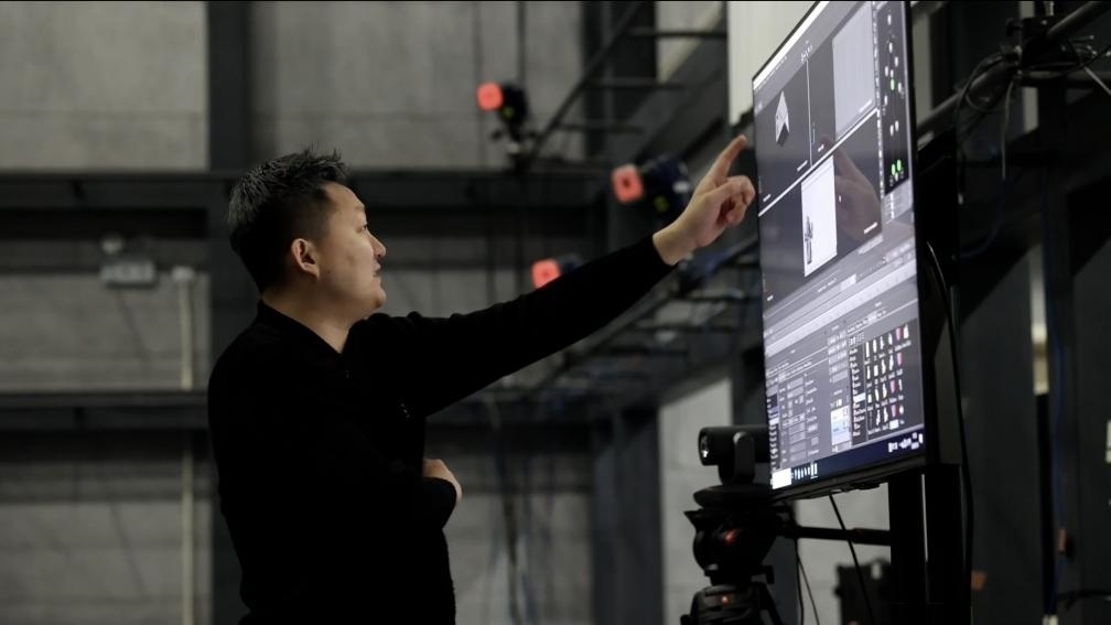 “這是動(dòng)作數(shù)字孿生,利用光學(xué)動(dòng)捕技術(shù),棚內(nèi)多個(gè)專業(yè)攝像頭捕捉演員身上的特定標(biāo)記,以毫秒級(jí)的速率計(jì)算出角色的運(yùn)動(dòng)軌跡,然后將數(shù)據(jù)傳送到電腦上,實(shí)現(xiàn)虛擬人物的動(dòng)作?!眹?guó)家動(dòng)漫園公共技術(shù)服務(wù)平臺(tái)動(dòng)捕棚的技術(shù)顧問(wèn)崔盛輯向記者介紹道。