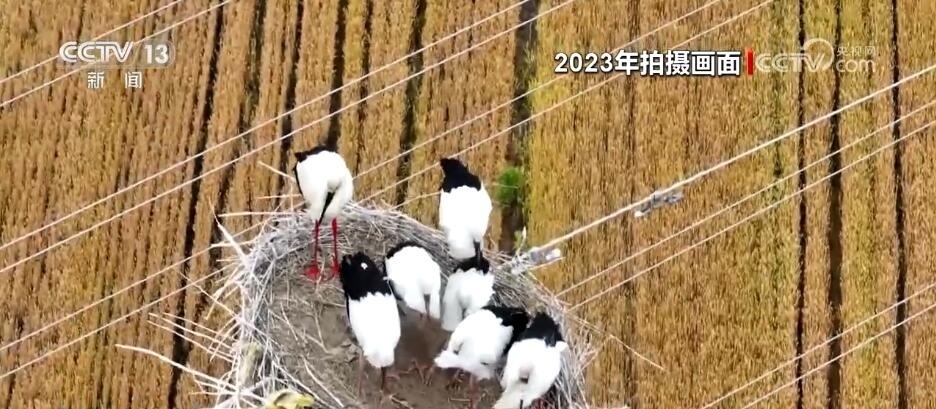 由于東方白鸛筑巢繁殖的位置位于輸電鐵塔頂端,為了給它們營造一個安全舒適的生活環(huán)境,當?shù)剡€成立了愛鳥志愿服務隊,守護人類共同的朋友。