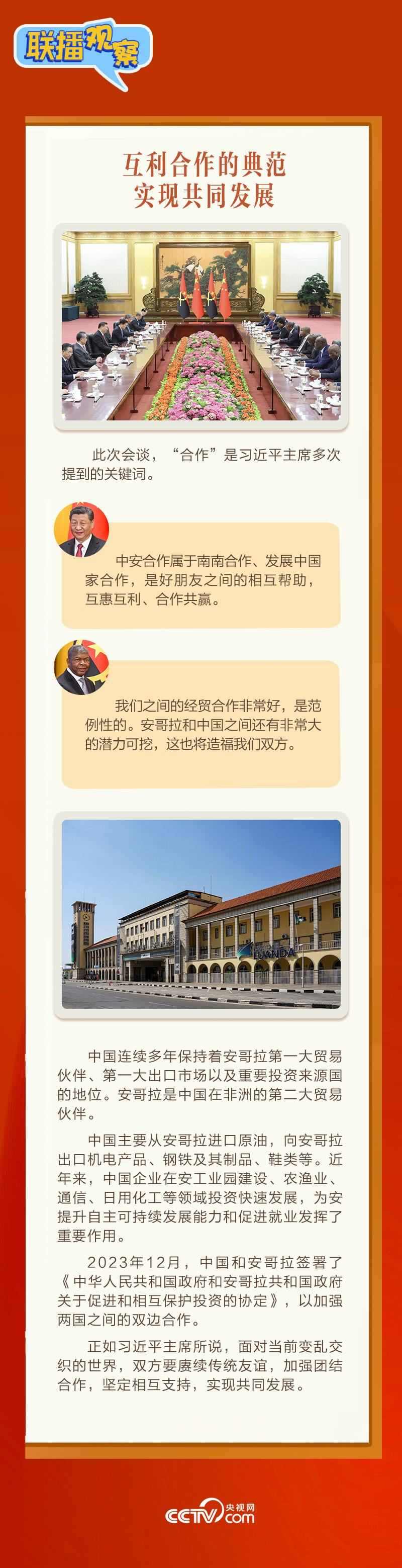 3月15日,習(xí)近平主席在人民大會(huì)堂同來(lái)華進(jìn)行國(guó)事訪問(wèn)的安哥拉總統(tǒng)洛倫索舉行會(huì)談。會(huì)談中,習(xí)主席稱洛倫索總統(tǒng)為“中國(guó)人民的老朋友”,評(píng)價(jià)中安關(guān)系“歷經(jīng)國(guó)際風(fēng)云變幻考驗(yàn),實(shí)實(shí)在在造福了兩國(guó)人民”。