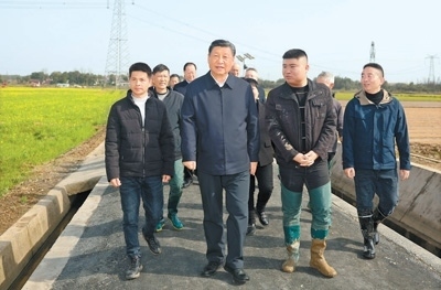 湖南是全國(guó)13個(gè)糧食主產(chǎn)省之一,水稻播種面積、總產(chǎn)量均居全國(guó)第一。當(dāng)天下午,習(xí)近平來(lái)到常德市鼎城區(qū)謝家鋪鎮(zhèn)港中坪村,走進(jìn)當(dāng)?shù)丶Z食生產(chǎn)萬(wàn)畝綜合示范片區(qū),察看秧苗培育和春耕備耕進(jìn)展,聽取高質(zhì)量推進(jìn)農(nóng)業(yè)現(xiàn)代化情況介紹,并同種糧大戶、農(nóng)技人員、基層干部一筆一筆算投入產(chǎn)出賬。習(xí)近平強(qiáng)調(diào),我國(guó)有14億多人口,糧食安全必須靠我們自己保證,中國(guó)人的飯碗應(yīng)該主要裝中國(guó)糧。要建設(shè)好高標(biāo)準(zhǔn)農(nóng)田,推行適度規(guī)模經(jīng)營(yíng),加強(qiáng)政策支持和示范引領(lǐng),加大良種、良機(jī)、良法推廣力度,在精耕細(xì)作上下功夫,進(jìn)一步把糧食單產(chǎn)和品質(zhì)提上去,讓種糧也能夠致富,進(jìn)而吸引更多農(nóng)戶參與發(fā)展現(xiàn)代化大農(nóng)業(yè),真正把中國(guó)特色農(nóng)業(yè)現(xiàn)代化之路走穩(wěn)走扎實(shí)。