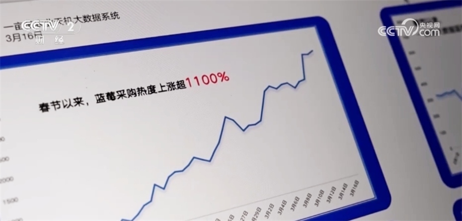 一個(gè)農(nóng)產(chǎn)品交易平臺(tái)的數(shù)據(jù)顯示,春節(jié)以來,他們平臺(tái)的藍(lán)莓品類采購(gòu)熱度上漲超過11倍。