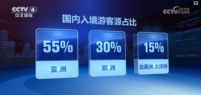 數(shù)據(jù)顯示,2024年以來(lái),國(guó)內(nèi)入境游整體訂單同比增長(zhǎng)超三倍,亞洲仍是入境游最大客源地區(qū),占比在55%,其次是歐洲、北美洲和大洋洲,分別占比30%和15%。