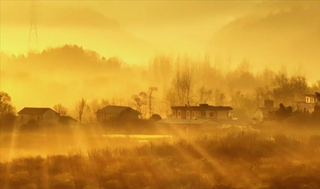 3月29日,安徽省池州市梅村鎮(zhèn)晨霧彌漫,靜謐的村莊、油菜花田在朝霞中若隱若現(xiàn),宛如一幅夢幻的江南詩意畫卷。