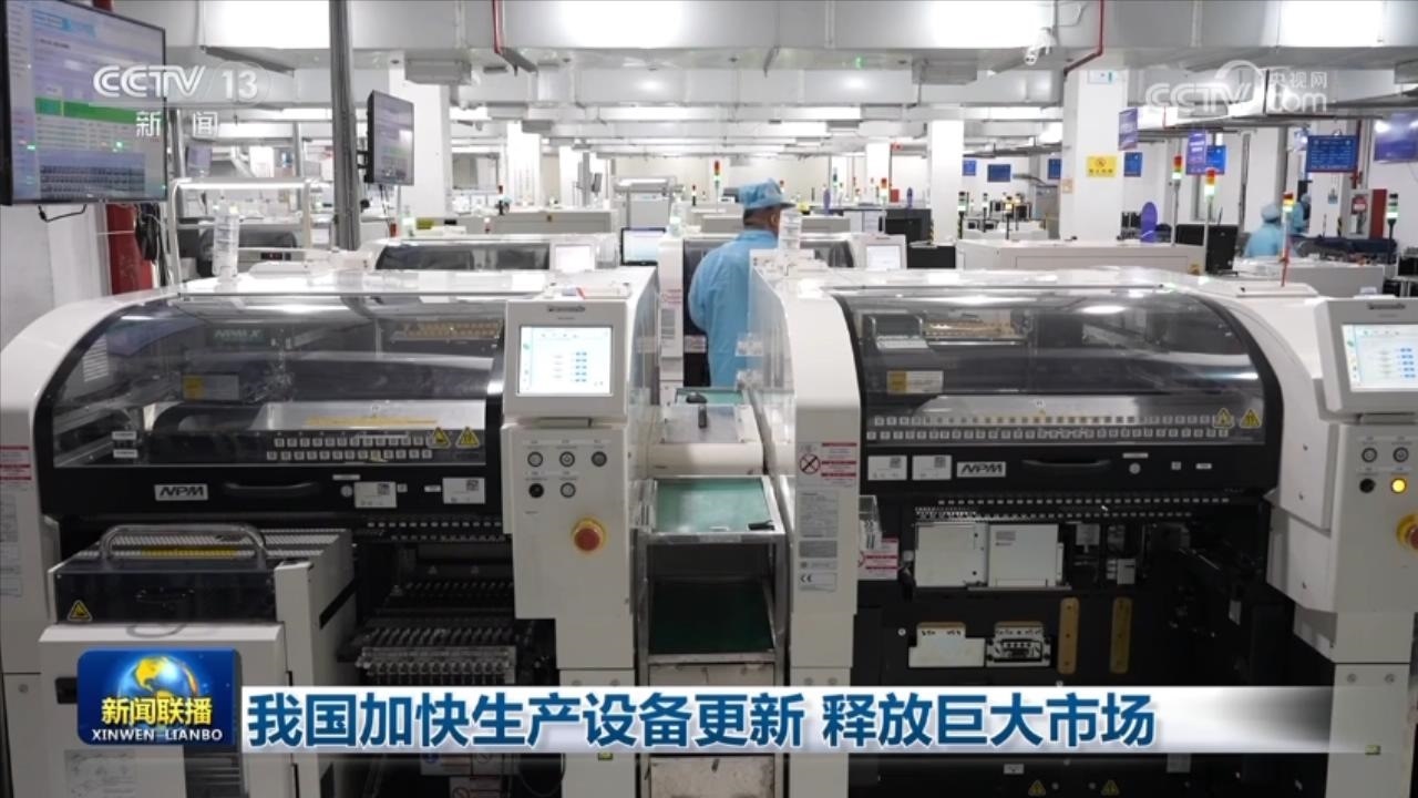 央視網(wǎng)消息(新聞聯(lián)播):我國推動大規(guī)模設備更新行動方案出臺以來,全國各地加快布局生產(chǎn)設備更新?lián)Q代,提升產(chǎn)能和降低能耗,釋放巨大市場空間。