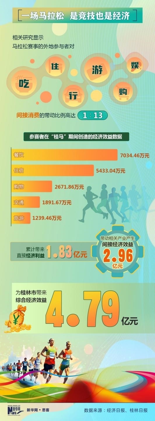 3月17日落幕的桂林馬拉松,根據(jù)測(cè)算,因賽事帶來的直接經(jīng)濟(jì)效益1.83億元,并帶動(dòng)相關(guān)產(chǎn)業(yè)產(chǎn)生間接經(jīng)濟(jì)效益2.96億元。今年的無錫馬拉松參賽者在錫馬期間創(chuàng)造餐飲、住宿、交通、旅游等經(jīng)濟(jì)效益2.82億元——這一數(shù)字,較去年提升了45.5%。2024浦口馬拉松期間,全區(qū)接待游客48.9萬(wàn)人次,實(shí)現(xiàn)旅游消費(fèi)3.6億元。