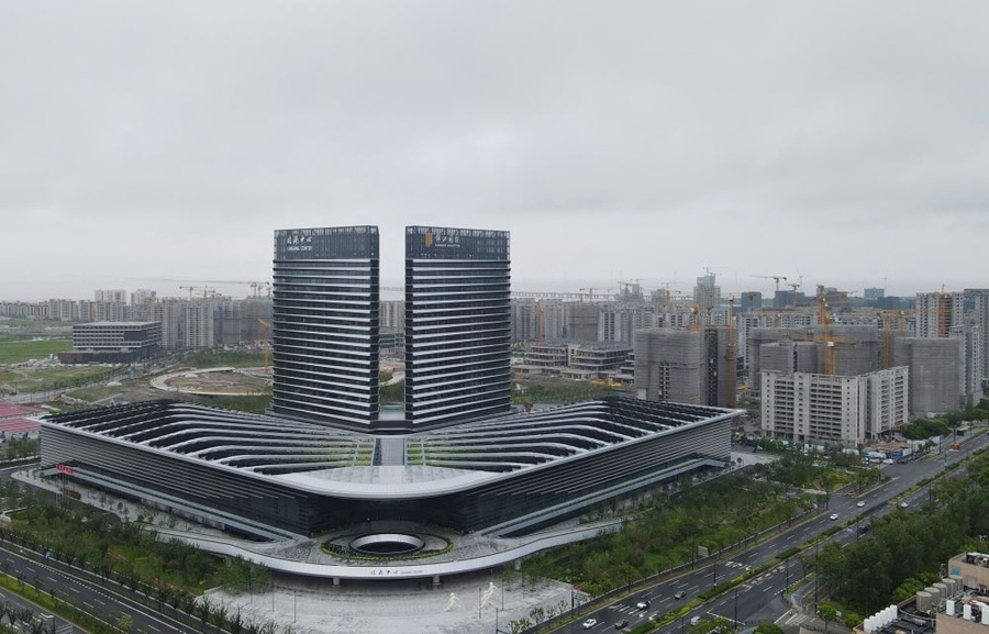 這是中國(guó)(上海)自由貿(mào)易試驗(yàn)區(qū)臨港新片區(qū)滴水湖(無(wú)人機(jī)全景照片,2023年9月6日攝)。