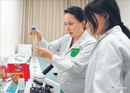 新疆醫(yī)資豪健康科技有限公司技術(shù)人員在研究配制新茶葉。乃比江·艾則孜攝