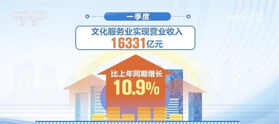 文化服務(wù)業(yè)實(shí)現(xiàn)較快增長(zhǎng),一季度,文化服務(wù)業(yè)實(shí)現(xiàn)營(yíng)業(yè)收入16331億元,比上年同期增長(zhǎng)10.9%。