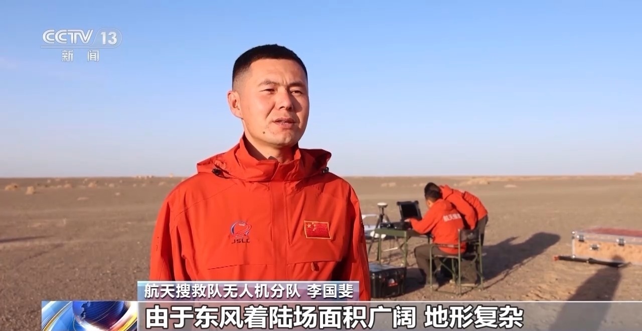 航天搜救隊(duì)無人機(jī)分隊(duì) 李國(guó)斐:由于東風(fēng)著陸場(chǎng)面積廣闊,地形復(fù)雜,單靠人力無法實(shí)現(xiàn)掌握整個(gè)著陸場(chǎng)的動(dòng)態(tài)情況,使用無人機(jī)就能彌補(bǔ)我們看不到的盲區(qū),通過搭載的不同載荷,比如高清攝像頭和熱成像設(shè)備,來滿足不同的搜救需求,大大提高了搜救的靈活性和多樣性。