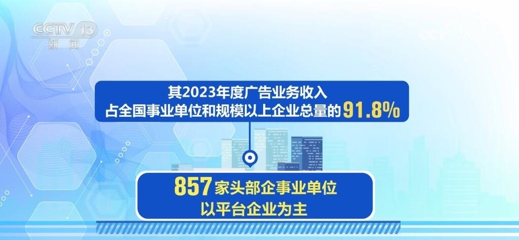據(jù)了解,857家頭部企事業(yè)單位以平臺(tái)企業(yè)為主,數(shù)據(jù)顯示其2023年度廣告業(yè)務(wù)收入占全國(guó)事業(yè)單位和規(guī)模以上企業(yè)總量的91.8%。其中,頭部平臺(tái)企業(yè)廣告業(yè)務(wù)收入占其營(yíng)業(yè)收入50%以上。平臺(tái)企業(yè)的廣告業(yè)務(wù)不僅帶動(dòng)廣大中小微廣告企業(yè)構(gòu)建起產(chǎn)業(yè)鏈,也為其開(kāi)展人工智能、新能源、云計(jì)算等技術(shù)創(chuàng)新提供了資金保障。