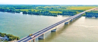 由中國企業(yè)承建的塞爾維亞貝爾格萊德澤蒙—博爾察大橋(普平大橋)。李 杰攝