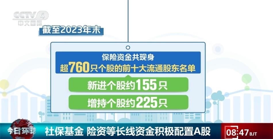 央視網(wǎng)消息:A股2023年年報(bào)日前披露結(jié)束,上市公司的前十大流通股東情況顯示,包括社?;?、保險(xiǎn)資金、合格境外機(jī)構(gòu)投資者等在內(nèi)的長線資金入市步伐正在不斷加快,A股中長期投資力量不斷壯大。