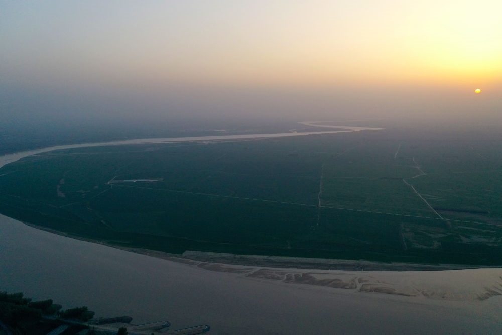 這是2024年4月17日在河南省蘭考縣黃河灣風(fēng)景區(qū)拍攝的黃河(無人機照片)。新華社記者 郝源 攝