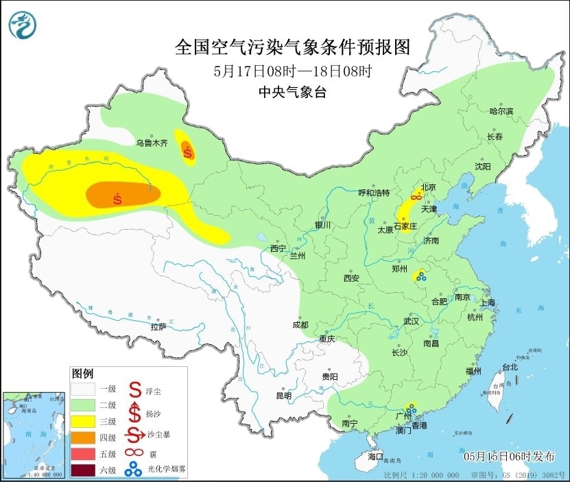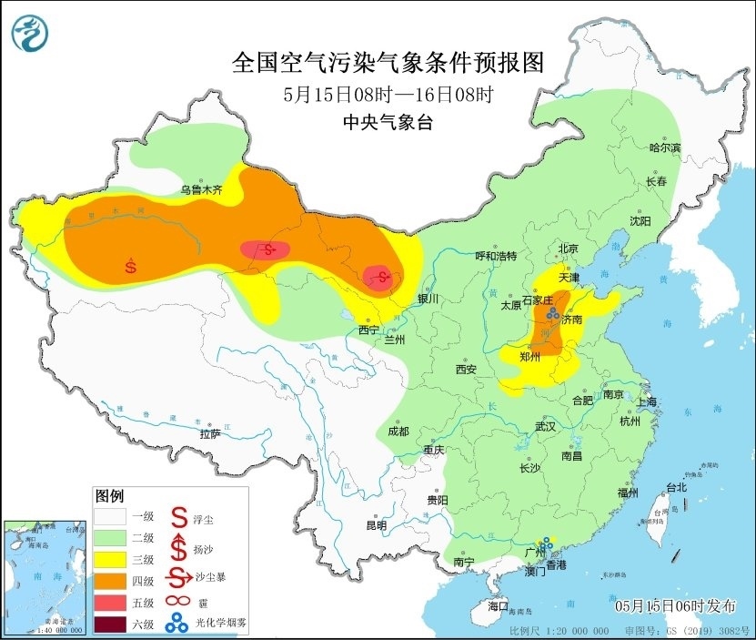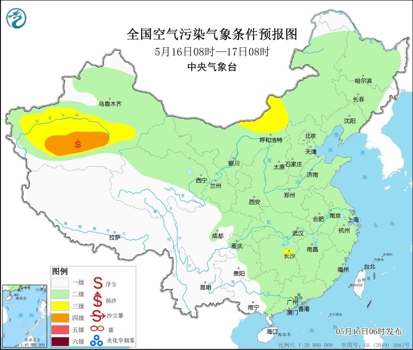 央視網(wǎng)消息:據(jù)中央氣象臺網(wǎng)站消息,預(yù)計,5月15日08時至16日08時,新疆南部和東部、甘肅西部、內(nèi)蒙古西部、青海北部以及河南中部等地有揚(yáng)沙或浮塵天氣,其中新疆東部、甘肅西部、內(nèi)蒙古西部等地局地有沙塵暴,中央氣象臺5月15日06時繼續(xù)發(fā)布沙塵暴藍(lán)色預(yù)警。