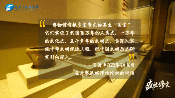 他強調(diào),博物館有很多寶貴文物甚至“國寶”,它們實證了我國百萬年的人類史、一萬年的文化史、五千多年的文明史,要深入實施中華文明探源工程,把中國文明歷史研究引向深入。