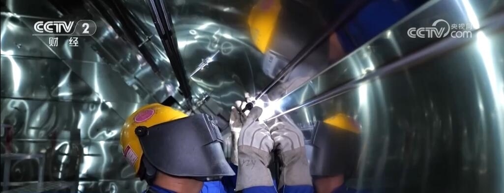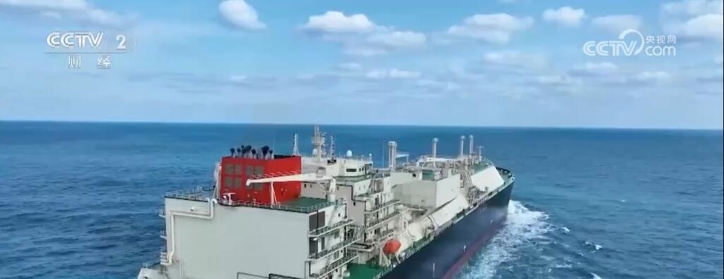 上海市長興島造船基地,記者身后的巨輪是我國新一代天然氣運輸船“綠能瀛”,它總長299米,寬度是46.4米,這一艘船的用鋼量就達到了25000噸,其甲板面積相當(dāng)于3個標準足球場,可裝載17.4萬立方米液化天然氣,能夠滿足700萬個家庭一個月的用氣需求。