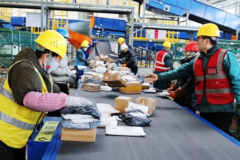 2月15日,中國(guó)郵政集團(tuán)甘肅省張掖市郵政寄遞物流共配中心工作人員在分揀包裹。春節(jié)假期,眾多勞動(dòng)者忙碌在工作崗位上。新華社發(fā)(成林 攝)