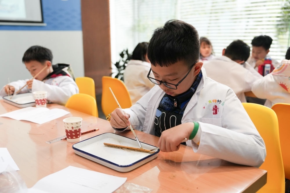 2024年3月16日,孩子們在長沙簡牘博物館參與社會教育活動“探秘簡牘的清洗與保護(hù)”。湖南是簡牘出土大省,長沙簡牘博物館推出了系列展陳、社會教育活動等,讓觀眾能走近這跨越千年的“百科全書”。