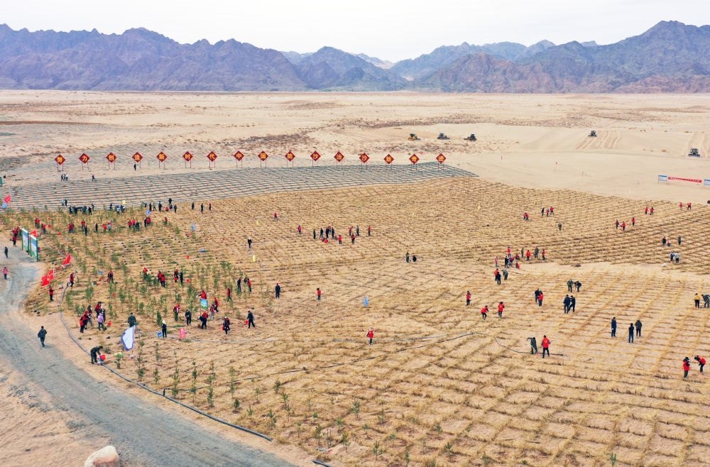 3月18日,內(nèi)蒙古自治區(qū)又發(fā)布2024年第2號(hào)總林長(zhǎng)令,對(duì)全力打好“三北”工程攻堅(jiān)戰(zhàn)三大標(biāo)志性戰(zhàn)役、實(shí)施防沙治沙和風(fēng)電光伏一體化工程作出具體部署。自治區(qū)黨委、政府領(lǐng)導(dǎo)還兵分十路,分別深入12個(gè)盟市的防沙治沙現(xiàn)場(chǎng),靠前指揮,參戰(zhàn)督戰(zhàn)。