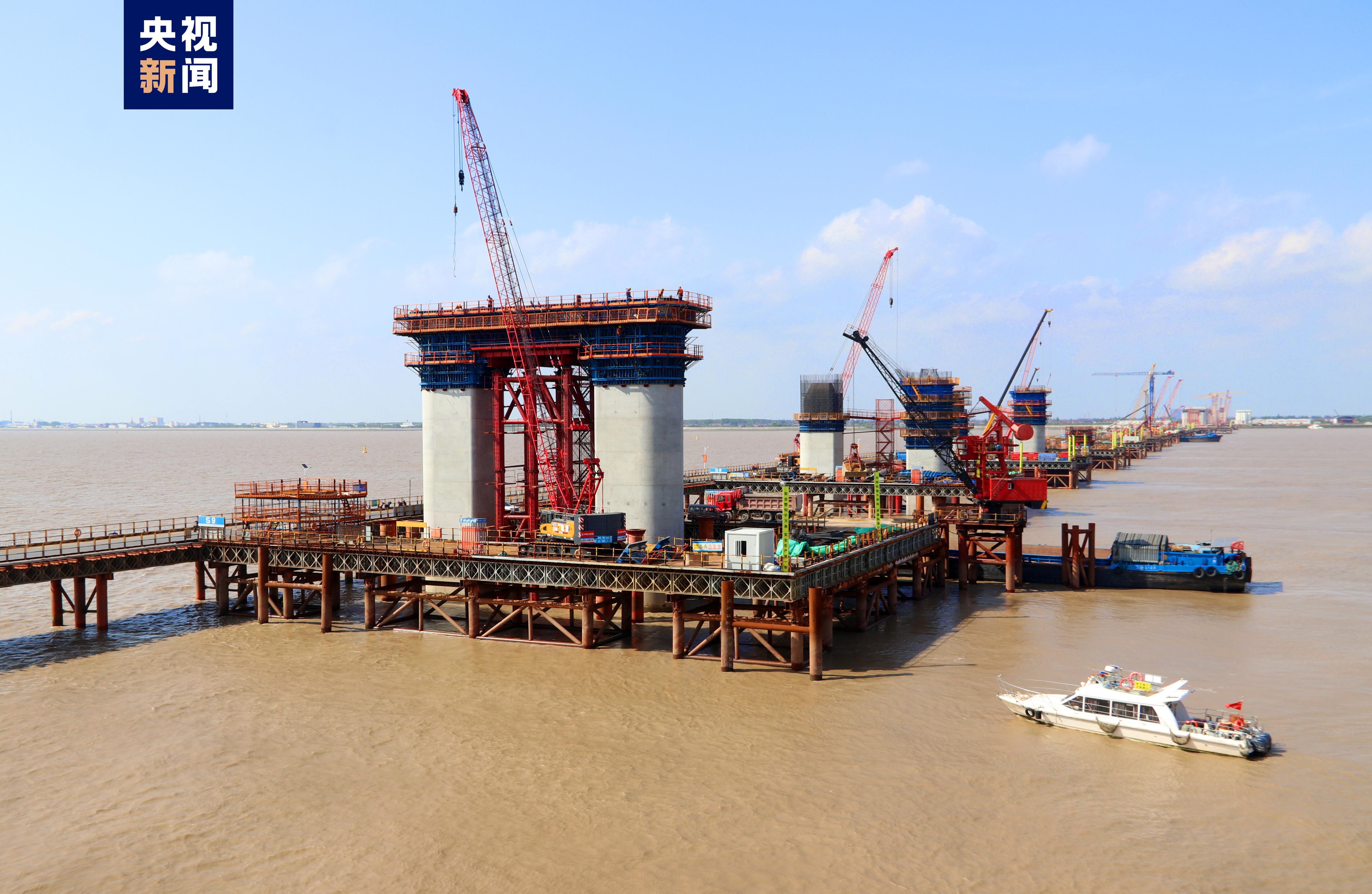 5月26日,隨著最后一車混凝土澆筑,滬渝蓉高鐵崇啟公鐵長江大橋主橋S9號墩蓋梁成功澆筑,標志著大橋水中首個門式橋墩建成。據(jù)介紹,S9號墩蓋梁橫橋向長30.5米、縱橋向?qū)?.0米、高4.0米,混凝土方量652.95立方米,采用落地鋼管支架一次澆筑成型。