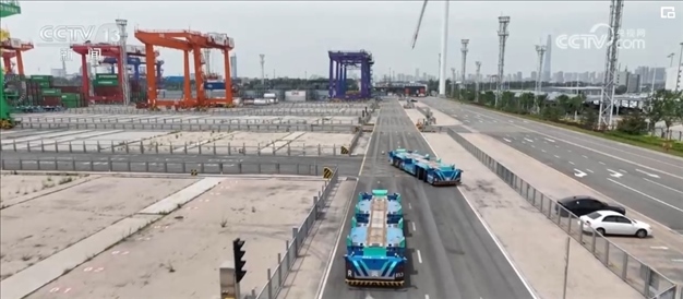 在堆場和貨輪之間有92個承擔(dān)運(yùn)輸任務(wù)的智能機(jī)器人,它們通過激光雷達(dá)、5G技術(shù),轉(zhuǎn)彎、減速、避讓,每跑一趟與周邊設(shè)備會進(jìn)行上百次信息交互。