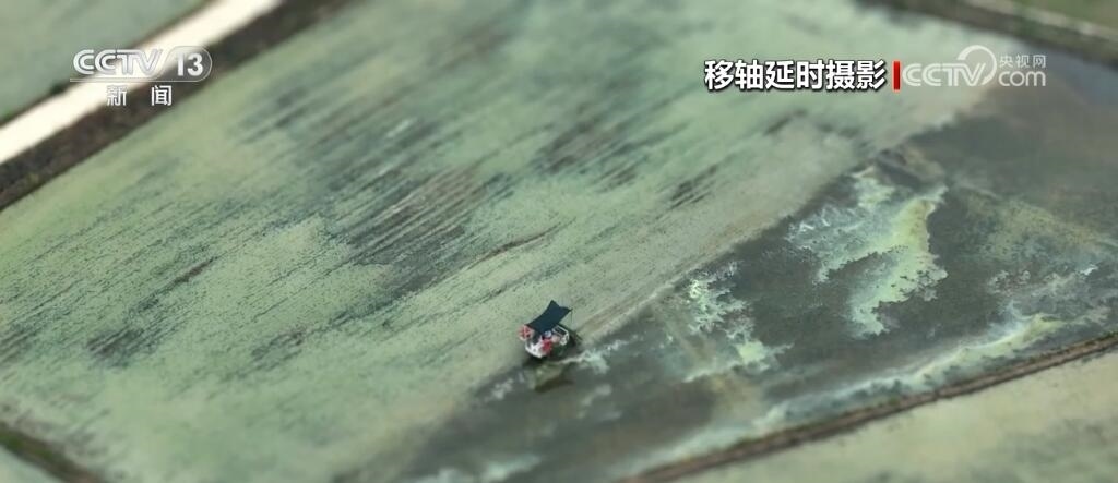 現(xiàn)在您看到的是河南信陽(yáng)淮河以南的水稻插秧現(xiàn)場(chǎng)。插秧機(jī)在田間穿梭,一株株茁壯的秧苗被整齊有序地植入田間,一會(huì)兒工夫就插滿了整塊稻田??罩懈╊?,一臺(tái)臺(tái)插秧機(jī)在農(nóng)機(jī)手的操控下好似一把把畫(huà)刷,在稻田上輕輕暈染,繪就丹青。而同在信陽(yáng),淮河以北的麥田里,則是金色的麥浪翻滾起伏,收割機(jī)馳騁田間,飽滿的麥穗被卷入機(jī)艙,經(jīng)過(guò)收割、脫粒,顆粒歸倉(cāng)。