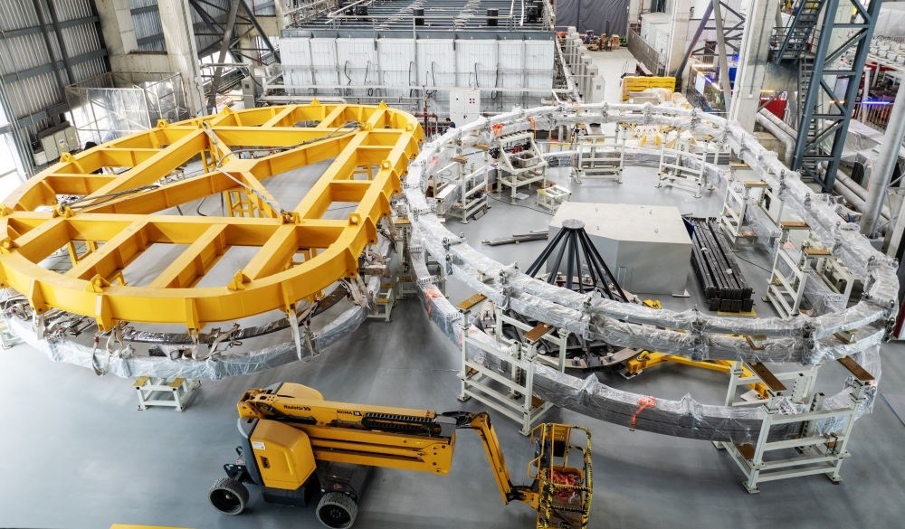 2024年5月27日在聚變堆主機(jī)關(guān)鍵系統(tǒng)綜合研究設(shè)施(CRAFT)園區(qū)內(nèi)拍攝的TF超導(dǎo)線圈生產(chǎn)線(無人機(jī)照片)。該研究設(shè)施將為未來中國聚變實(shí)驗(yàn)堆、工程堆的設(shè)計(jì)建設(shè),搭建參數(shù)高、性能全、功能完備的綜合性研究及測試平臺。