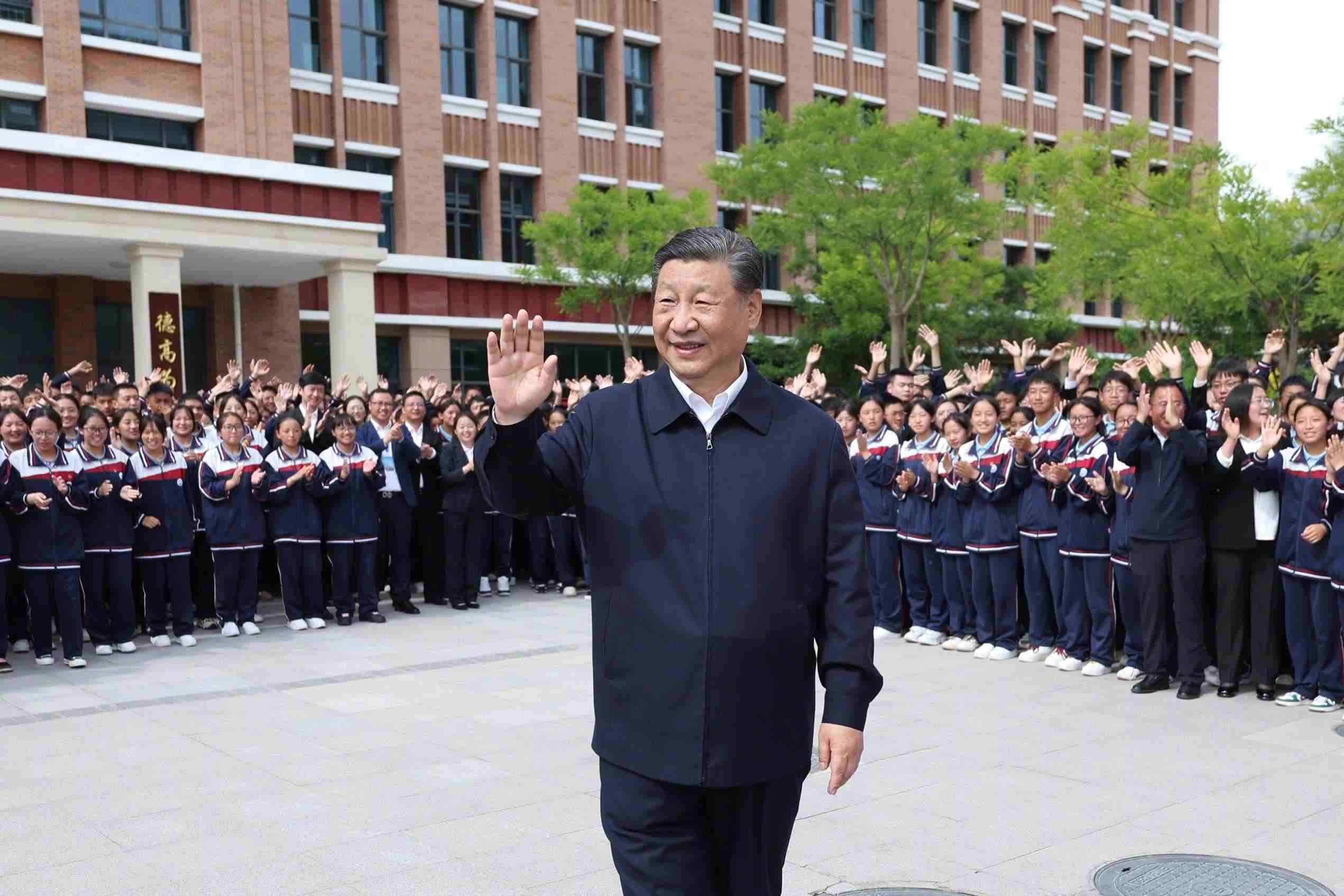 2024年6月18日下午,在青海考察調研的習近平總書記來到果洛西寧民族中學,了解當?shù)厣钊胪七M教育工作東西部協(xié)作和對口支援等情況。