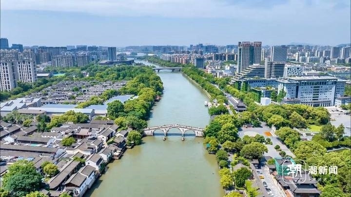 2023年7月18日,京杭運河杭州段二通道通航,大運河南端的“北門戶”臨平三河交匯、古今并流。為保護700余年歷史的廣濟橋而繞道25年的運河水運,自此打通“梗阻”、百舸爭流。