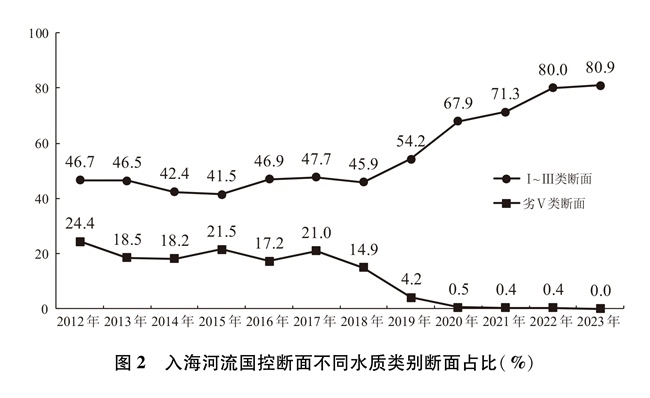 抓好入海河流污染防治。入海河流是陸源污染物輸入海洋的最重要途徑。中國積極提升城鎮(zhèn)污水處理質(zhì)效,建設(shè)改造雨污分流管網(wǎng),加強(qiáng)污水處理行業(yè)監(jiān)管,降低城鎮(zhèn)生產(chǎn)生活污水對入海河流水質(zhì)影響。2012年以來,沿海地區(qū)污水處理基礎(chǔ)設(shè)施建設(shè)顯著提速,地級以上城市污水處理廠基本完成一級A提標(biāo)改造。開展農(nóng)村環(huán)境整治,“十四五”以來,沿海省份新增完成1.7萬個行政村環(huán)境綜合整治,編制完成170個畜牧大縣畜禽養(yǎng)殖污染防治規(guī)劃,農(nóng)村生活污水治理率超過45%,大幅降低農(nóng)業(yè)農(nóng)村污水排放。著力破解流域氮排放過量的近岸海域水質(zhì)污染和富營養(yǎng)化問題,建立沿海、流域、海域協(xié)同一體的綜合治理體系,探索將總氮控制范圍向入海河流上游拓展,推動入海河流實施“一河一策”總氮治理。2012-2017年中國入海河流國控斷面水質(zhì)整體保持穩(wěn)定并有所好轉(zhuǎn),2018年以后水質(zhì)整體大幅好轉(zhuǎn)。目前,入海河流國控斷面水質(zhì)優(yōu)良(Ⅰ~Ⅲ類)斷面數(shù)量約占整體的五分之四左右,喪失使用功能(劣Ⅴ類)斷面基本消除。