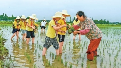 手臂、褲腿沾滿泥巴,汗珠順著臉頰流下,同學(xué)們卻毫不在意。陽光灑在大家的身上,田里傳來歡聲笑語,這堂深入鄉(xiāng)村的沉浸式思政課進入尾聲……