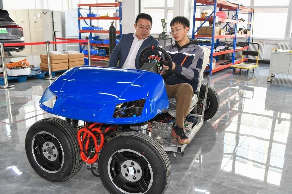 2024年3月13日,在吉林長春一家汽車科技企業(yè),吉林大學(xué)汽車工程學(xué)院教授靳立強(qiáng)(左)試乘智能底盤樣車。2023年,長春市科技局和吉林大學(xué)共建吉林大學(xué)概念驗證中心,一手對接高校,一手對接企業(yè),確??蒲谐晒诩夹g(shù)路線和商業(yè)模式上的可行性,實(shí)現(xiàn)“從0到1”的轉(zhuǎn)化。