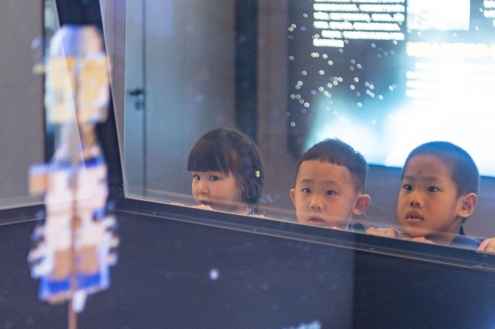 2024年4月24日,小朋友在哈爾濱工業(yè)大學(xué)航天館內(nèi)參觀。航天館是哈爾濱工業(yè)大學(xué)重要的教學(xué)基地,也是向社會公眾開展航天國防教育、弘揚(yáng)航天精神的重要場所,被授予首批全國科普教育基地、首批國家航天局航天科普教育基地、全國中小學(xué)生研學(xué)實(shí)踐教育基地等。
