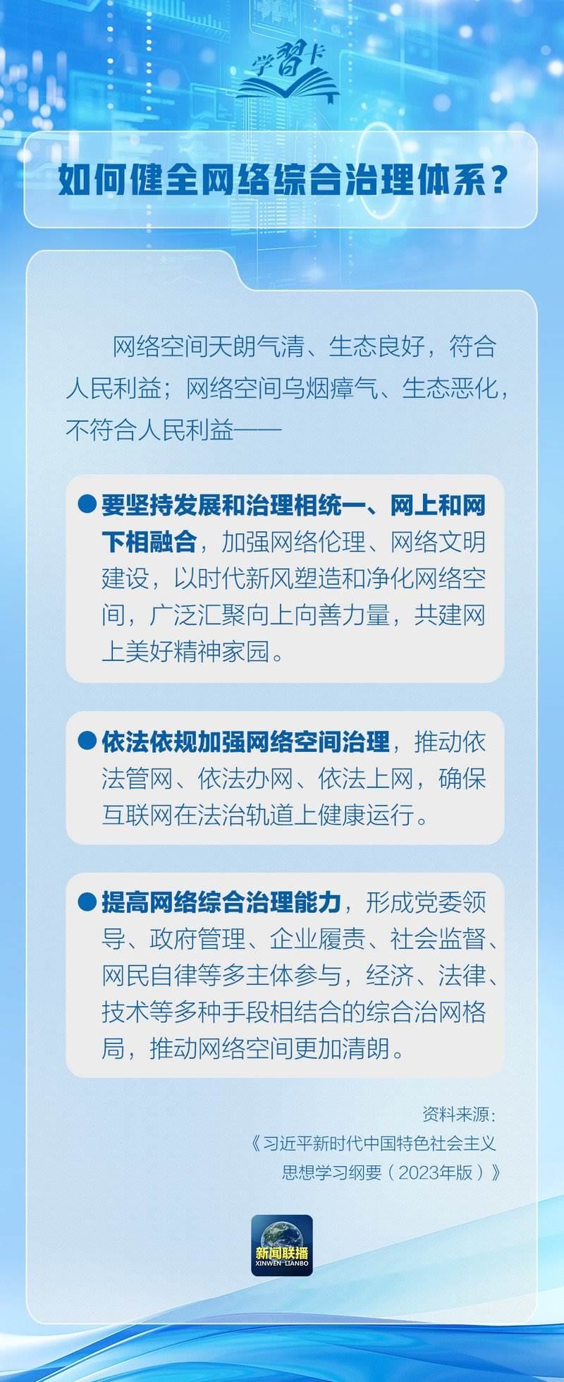 習(xí)近平總書記在《關(guān)于〈中共中央關(guān)于進(jìn)一步全面深化改革、推進(jìn)中國(guó)式現(xiàn)代化的決定〉的說(shuō)明》中強(qiáng)調(diào)要健全網(wǎng)絡(luò)綜合治理體系。