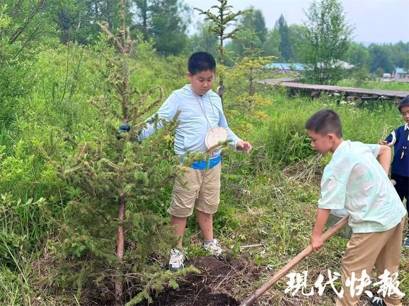 這樣的美麗風(fēng)景讓第一次來到大草原的周云昊很興奮?!拔覀儚漠?dāng)?shù)亓私獾?,這是一代又一代人努力的結(jié)果,讓我們也深切感受到生態(tài)保護(hù)的重要性?!毖袑W(xué)途中,周云昊和小伙伴們還專門在當(dāng)?shù)亓謭?chǎng)種下一棵樹?!跋M芙】甸L(zhǎng)大,成為守護(hù)綠色草原的小衛(wèi)士?!?/p>