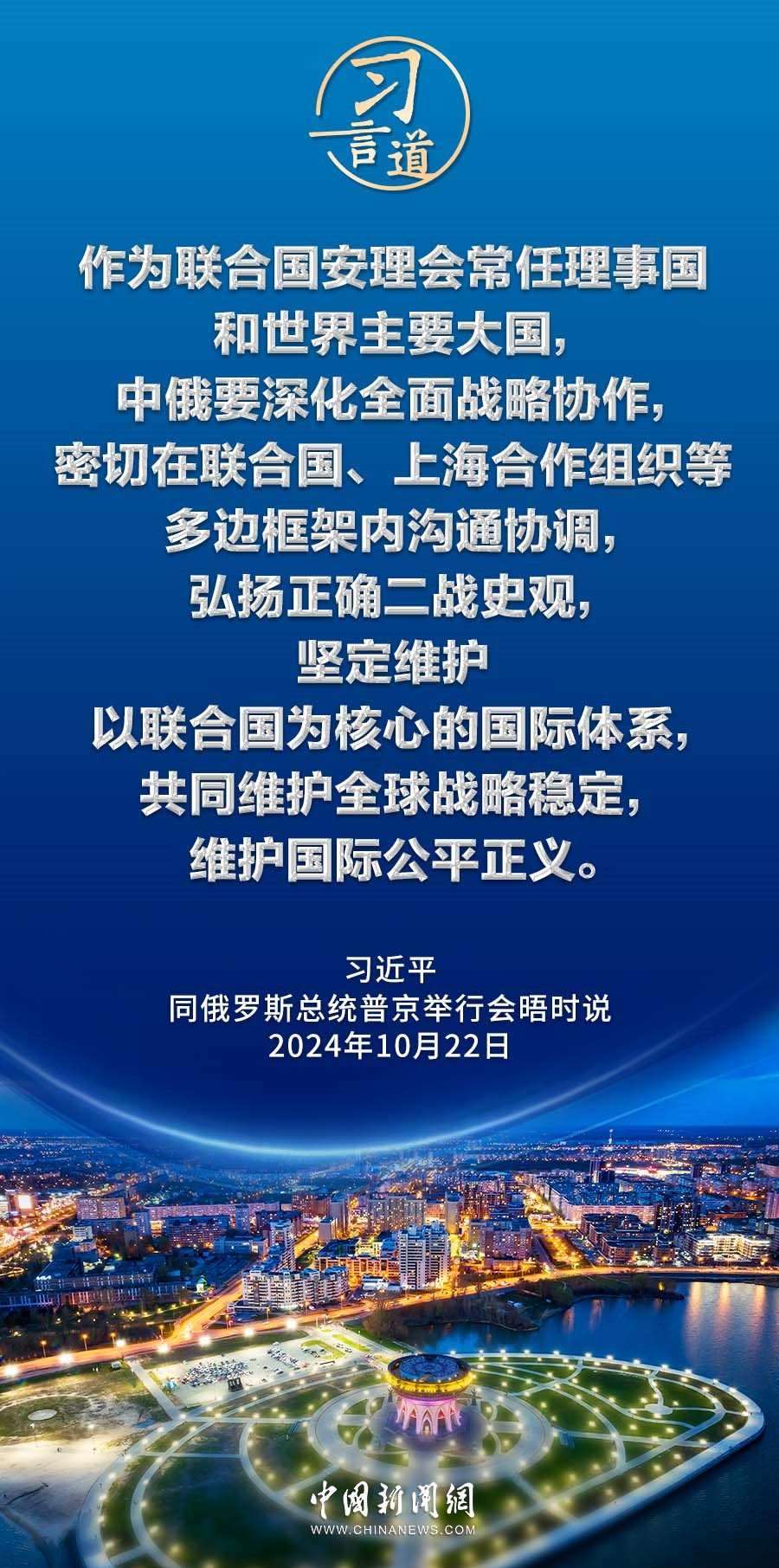 當?shù)貢r間10月22日下午,國家主席習近平在喀山克里姆林宮同俄羅斯總統(tǒng)普京舉行會晤。習近平指出——