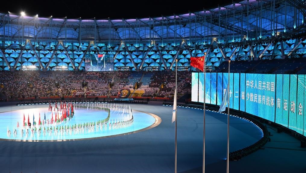 30日晚,第十二屆全國少數(shù)民族傳統(tǒng)體育運動會(以下簡稱“運動會”)在三亞市體育中心舉行閉幕式。全部比賽已在29日結(jié)束。過去的9天,56個民族歡聚一堂,訴說手足之情,唱響團結(jié)之歌。本屆運動會共設(shè)競賽項目18項149個小項、表演項目三大類170個小項。近7000名各族運動員團結(jié)拼搏、友好互助,在競賽和聯(lián)歡中加深情誼,寫下共赴美好生活的新篇章。